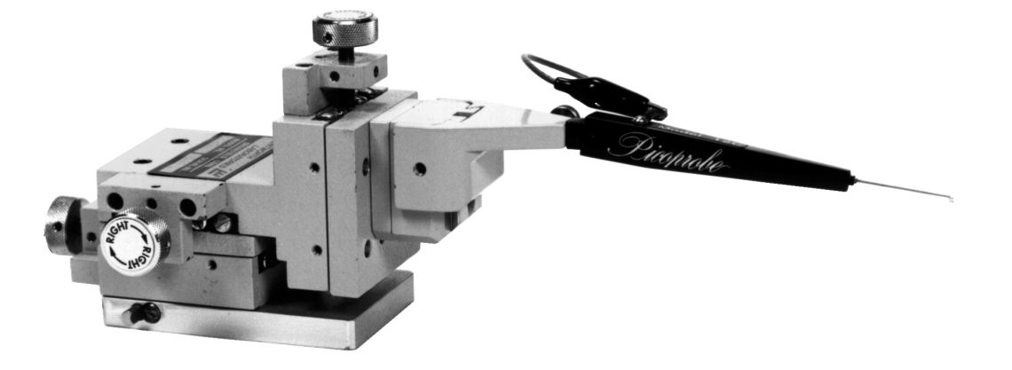 The circuitry located in the Model 18C and Model19C Picoprobe® body is very rugged; however, the unprotected MOS input in each probe tip is subject to destruction by electrostatic discharge. Should the probe tip become damaged, it can easily be removed and replaced.