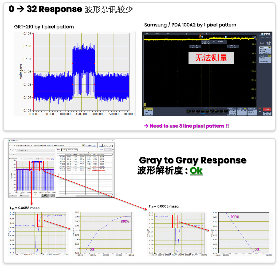 ● 强大波型分析功能:可自动排除 OLED 脉冲波型干扰,擷取正确的反应时间;