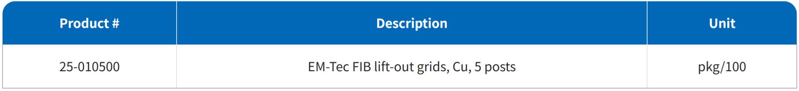 Copper EM-Tec FIB lift out grids 5