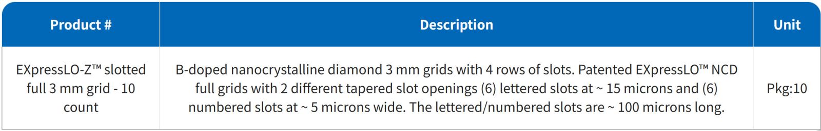 EXpressLO-Z™ slotted full 3 mm grid - 10 count