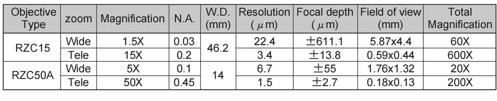 • 高倍率观察,可接收范围从可见光到红外光650 - 1200nm的波长